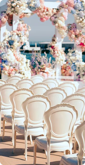 A: At Tiaarah, we specialize in all-inclusive destination wedding packages that take away the stress of planning. From décor and design to entertainment, we bring everything together under one roof so you can simply enjoy your celebration. We also offer standalone décor and entertainment services for weddings.